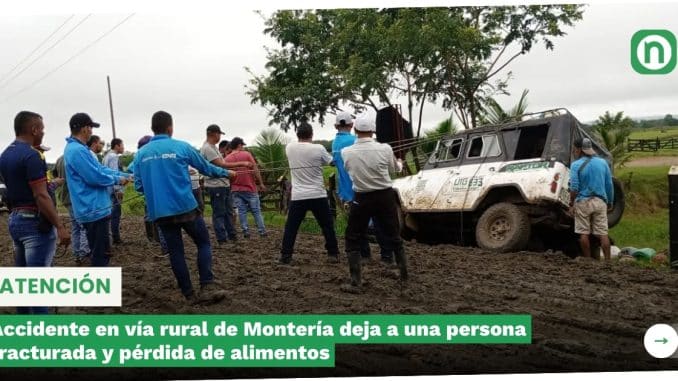Accidente en vía rural de Montería deja a una persona fracturada y pérdida de alimentos