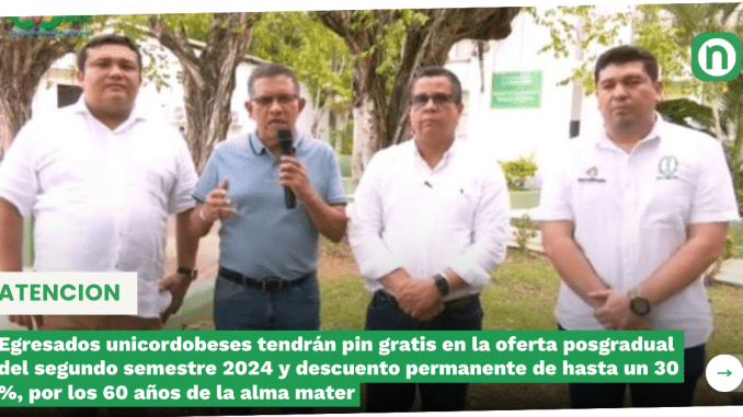 Egresados unicordobeses tendrán pin gratis en la oferta posgradual del segundo semestre 2024 y descuento permanente de hasta un 30 %, por los 60 años de la alma mater