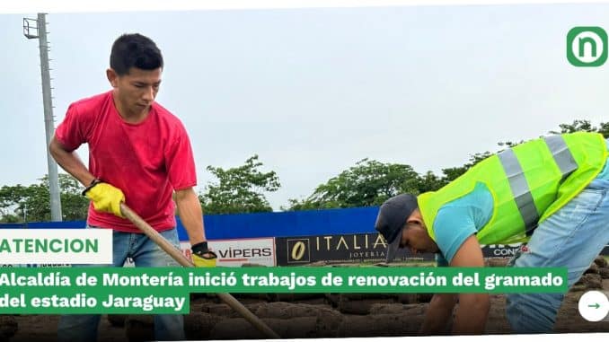 Alcaldía de Montería inició trabajos de renovación del gramado del estadio Jaraguay