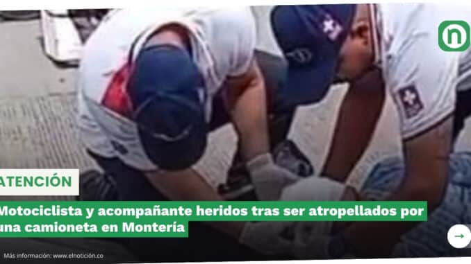 Motociclista y acompañante heridos tras ser atropellados por una camioneta en Montería