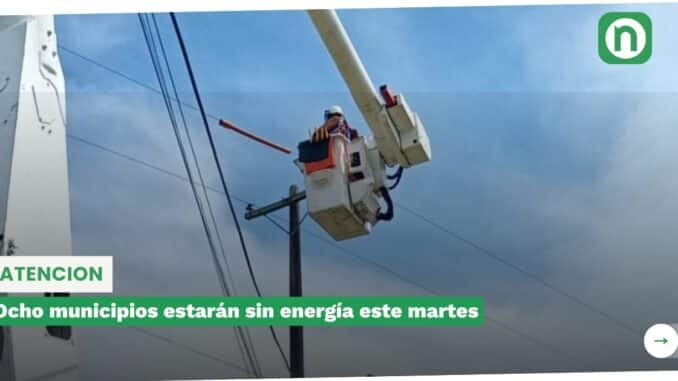 Ocho municipios estarán sin energía este martes