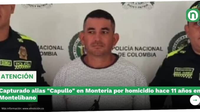 Capturado alias “Capullo” en Montería por homicidio hace 11 años en Montelíbano