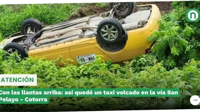 Con las llantas arriba: así quedó un taxi volcado en la vía San Pelayo – Cotorra