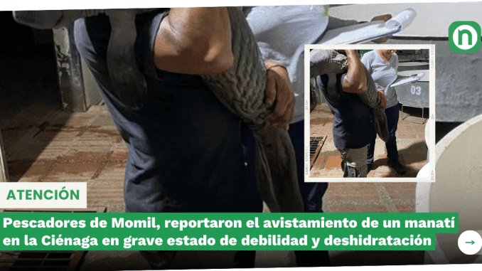Pescadores de Momil, reportaron el avistamiento de un manatí en la Ciénaga en grave estado de debilidad y deshidratación