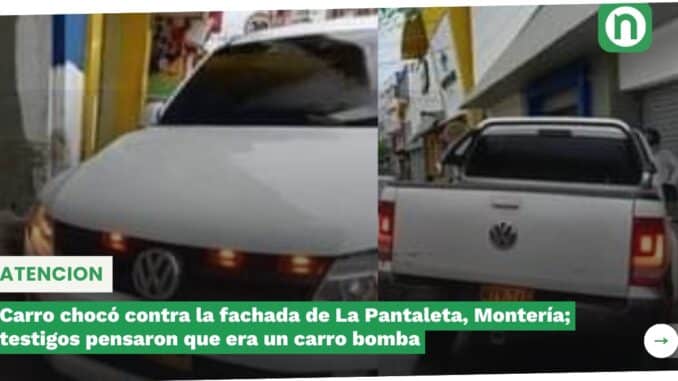 Carro chocó contra la fachada de La Pantaleta, Montería; testigos pensaron que era un carro bomba