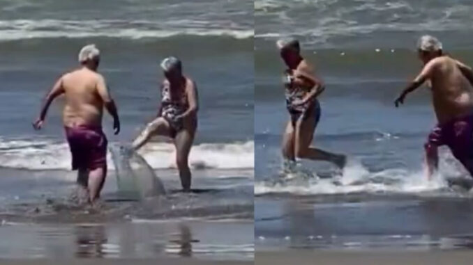 Abuelitos juegan como niños en la playa y se viralizan en redes sociales