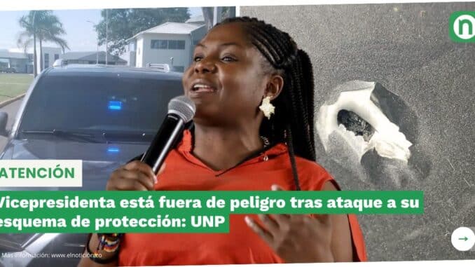 Según informes de la Unidad Nacional de Protección (UNP), dos automóviles del esquema de seguridad de la Vicepresidenta fueron alcanzados por disparos de arma de fuego. a Vicepresidenta de Colombia, Francia Márquez, se encuentra fuera [ Leer más ]