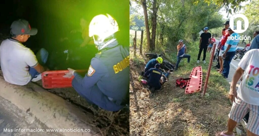 El primer accidente se registró en la vía que conduce al corregimiento de Las Llanadas, donde dos personas resultaron lesionadas tras el choque de dos vehículos. De inmediato, personal del CAMU San Rafael y del Cuerpo de Bomberos de Sahagún acudió al lugar para atender la emergencia y trasladar a los afectados a un centro médico.