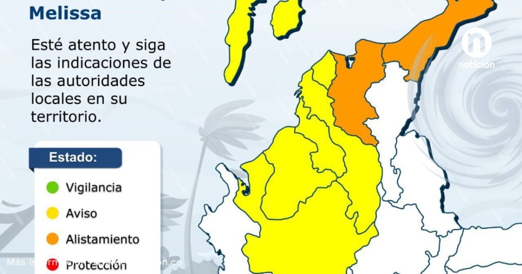La Mesa Técnica de Alertas de Ciclones Tropicales (MTACT) informó que la tormenta tropical Melissa continúa su desplazamiento lento sobre el mar Caribe central, con dirección oeste-noroeste, generando condiciones adversas en amplias zonas marítimas y continentales del Caribe colombiano.