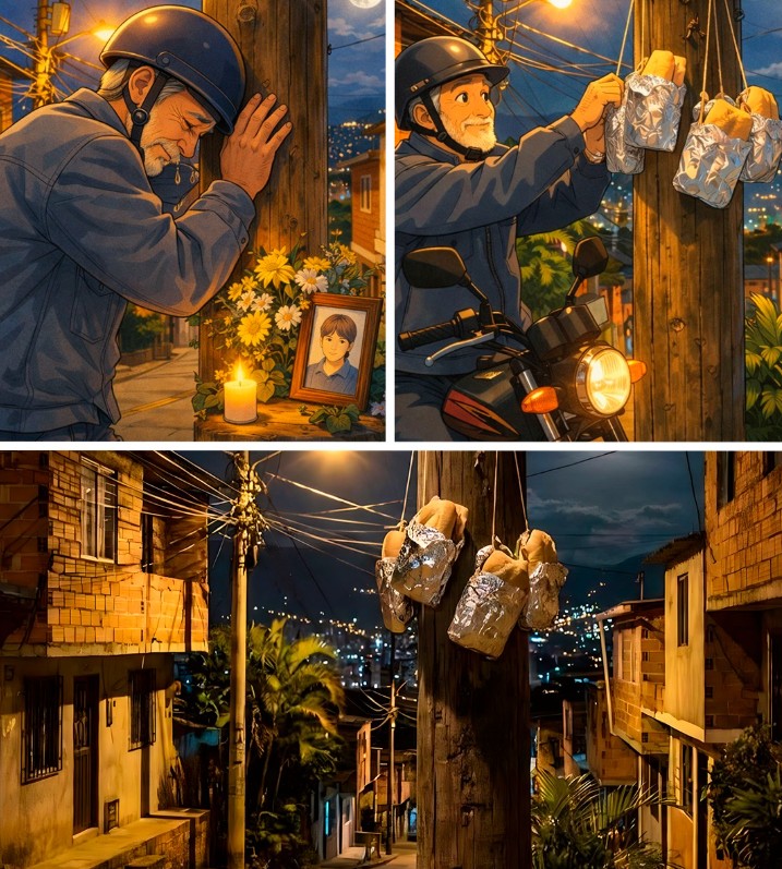 Durante seis años exactos, el barrio Manrique de Medellín fue testigo de un acto de caridad ininterrumpido. Cada noche, ocho sándwiches aparecían colgados en un poste para los habitantes de calle del sector. El autor de esta labor fue Hernán, un hombre que encontró en la solidaridad una forma de procesar el duelo por su hijo Sebastián, quien falleció en esa misma ubicación debido a la desnutrición e hipotermia.