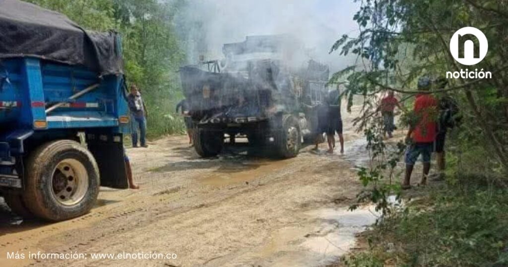 En horas de la mañana del pasado miércoles 5 de noviembre, una volqueta fue incinerada por sujetos armados en una trocha del sector Puente Zulia, Norte de Santander. en este mismo municipio metropolitano.