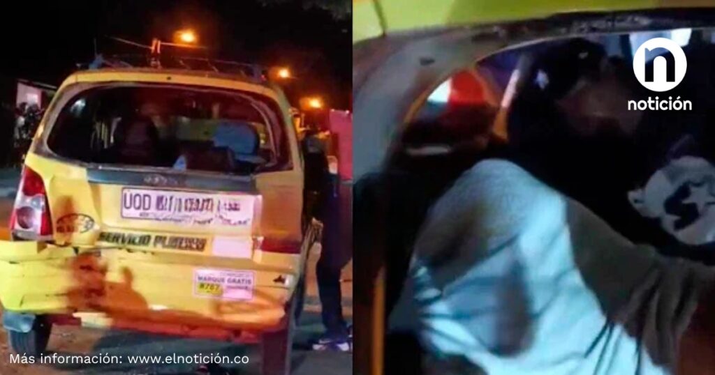 Un motociclista quedó dentro de un taxi tras romper el panorámico trasero del vehículo en un insólito accidente ocurrido en la vía hacia el corregimiento de El Sabanal, en Montería.
