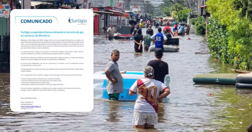 Montería atraviesa una nueva medida preventiva en medio de la emergencia por las lluvias. La empresa Surtigas informó la suspensión temporal del servicio de gas natural domiciliario en diez barrios de la capital cordobesa, como respuesta a las afectaciones generadas por las inundaciones registradas en los últimos días.