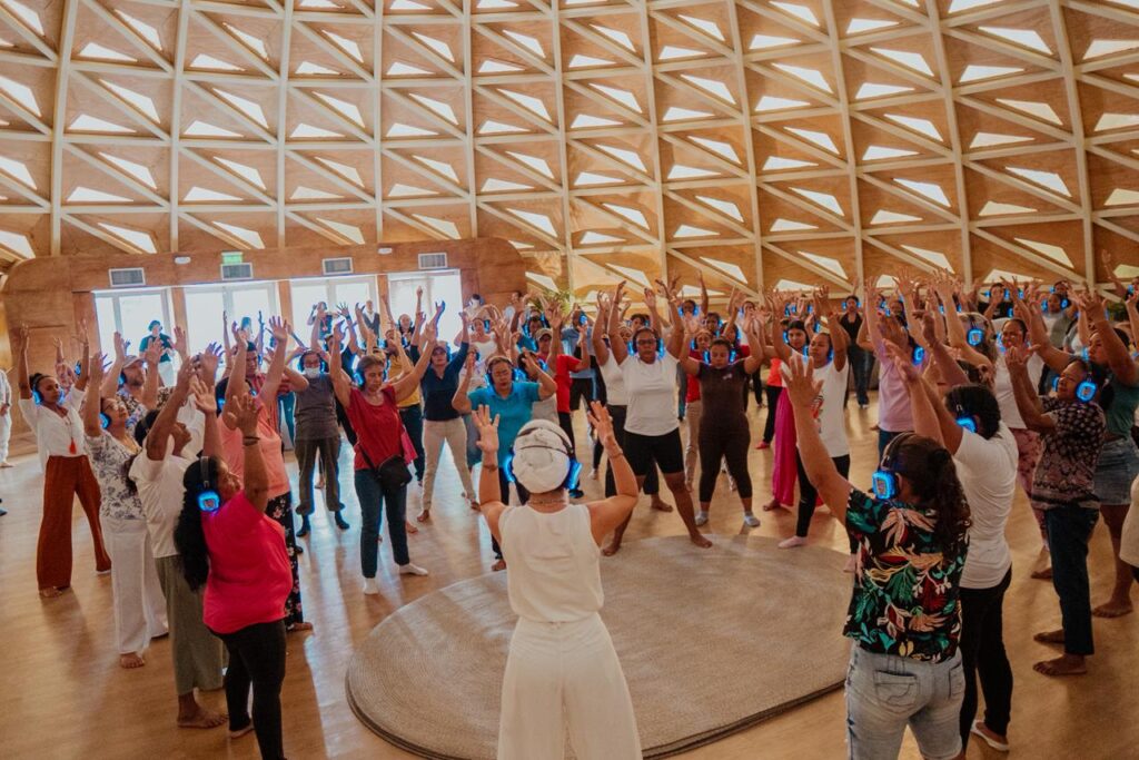 La programación incluyó sesiones de yoga y mindfulness, espacios de pausa para el alma con prácticas de respiración consciente y sound healing, y experiencias de ecstatic dance, todas orientadas a promover la conexión cuerpo-mente y la regulación emocional.